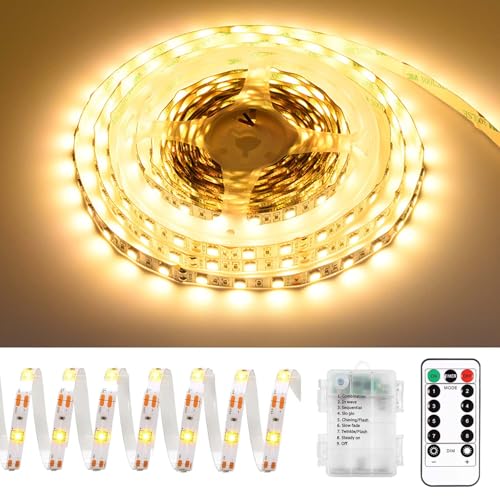 LED-remsa batteridriven,LED-remsor batteri med fjärrkontroll timer,8 lägen med självhäftande, LED-remsa,med batteridriven och fjärrkontroll,vattentäta ljuslister för sovrum, skåp, hem, fest