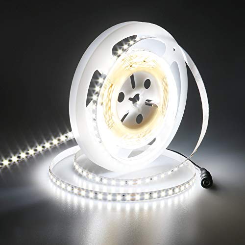 JOYLIT 24V LED-Remsa Lampor 5M 6000K Kallvit 2240lm/M Ultraljus CE UL Listad Premie CRI 90+ Inomhusbruk IP20 Hög Densitet 1200LEDs 2835SMD Självhäftande LED Strip för Bostäder, Kommersiella