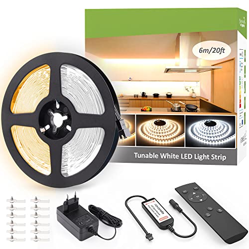 NOVOSTELLA 6M dimbara LED-remsor, 672 lysdioder varmvit till kallvit 3000K-6500K justerbar ljusstyrka med RF-fjärrkontroll, flexibel självhäftande LED-ljusstång för TV, skåp, skåp, festival, 24 V