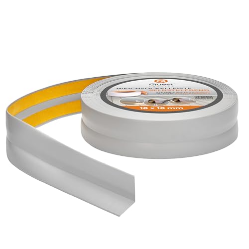 Quest Självhäftande Mjuk Golvlist – 18 mm x 18 mm – Böjbar list, avslutningslist för kök och badrum – Sockellist PVC, flexibel, vattentät, dekorativ (Grå, 5m)