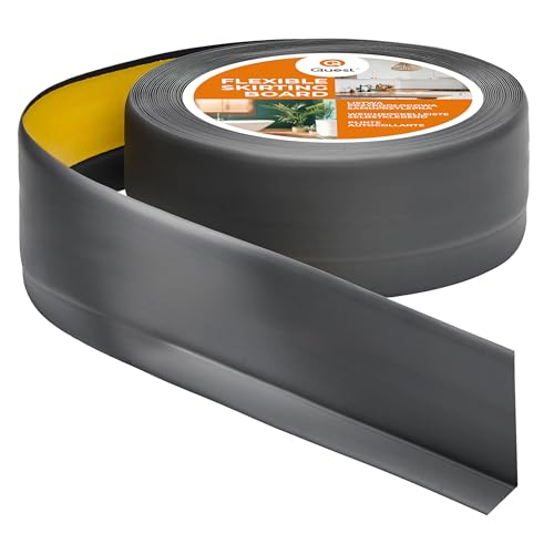 Quest Självhäftande Mjuk Golvlist – 30 mm x 30 mm – Böjbar list, avslutningslist för kök och badrum – Sockellist PVC, flexibel, vattentät, dekorativ (Mörkgrå, 5m)