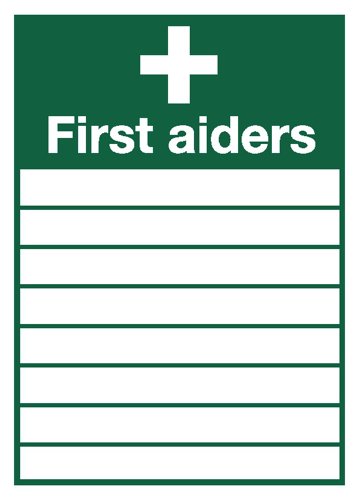 Seco First Aiders (List of Names) skylt, 255 mm x 355 mm - Självhäftande vinyl