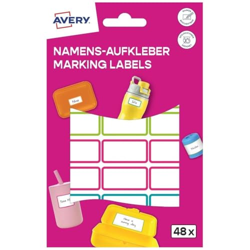 AVERY Zweckform NAME48C namnklistermärken barn vattentäta 48 stycken (15 x 31 mm, folie, självhäftande namnetiketter, skrivbara namnskyltar, diskmaskinssäkra, för skola, dagis) färgglada