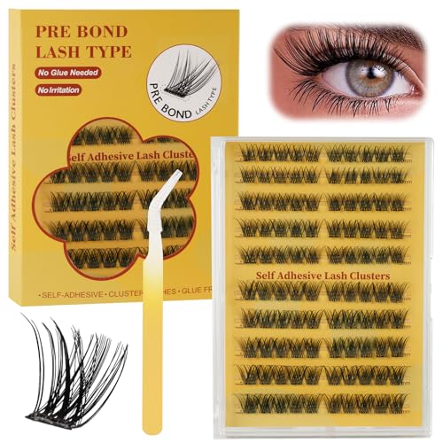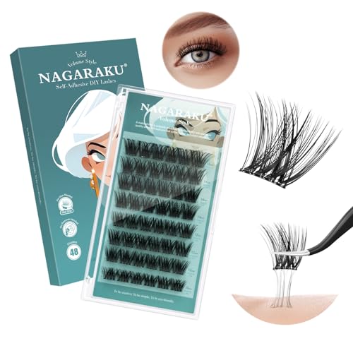NAGARAKU Självhäftande Ögonfransar 48 Kluster DIY Voluminösa Inget Limborttagningsmedel Pressande Återanvändbara Förlimmade Mjuka Tunna Lösfransar Ögonfranskluster Kraftig Makeup (0.07mm C 10-16mm)