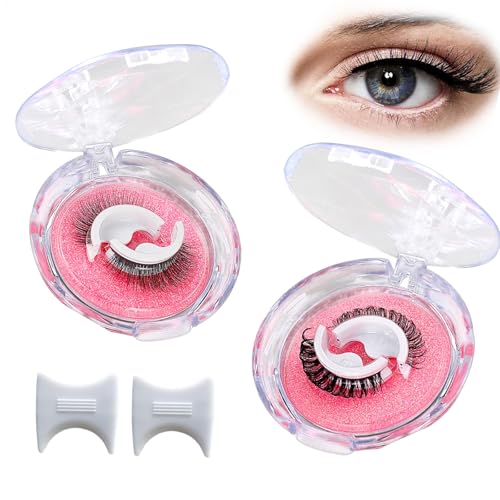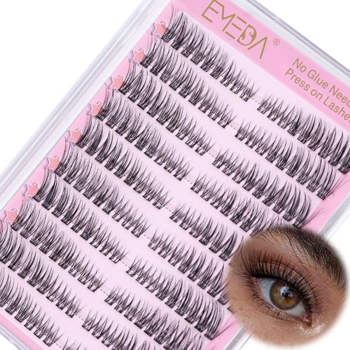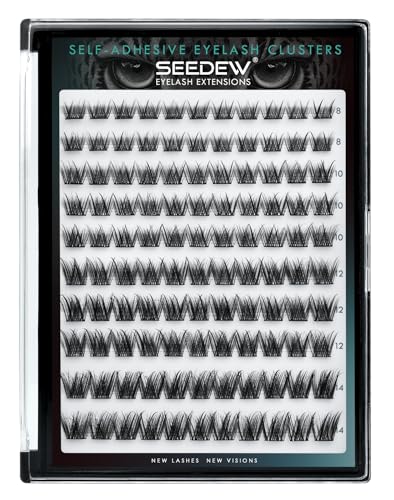 SEEDEW Självhäftande ögonfransar hemma, naturlig 3D-volym 99 stycken enskilda ögonfransförlängningar, inget lim krävs, mjuka falska ögonfransförlängningar för fester (volym 2-C-MIX8-14-svart)