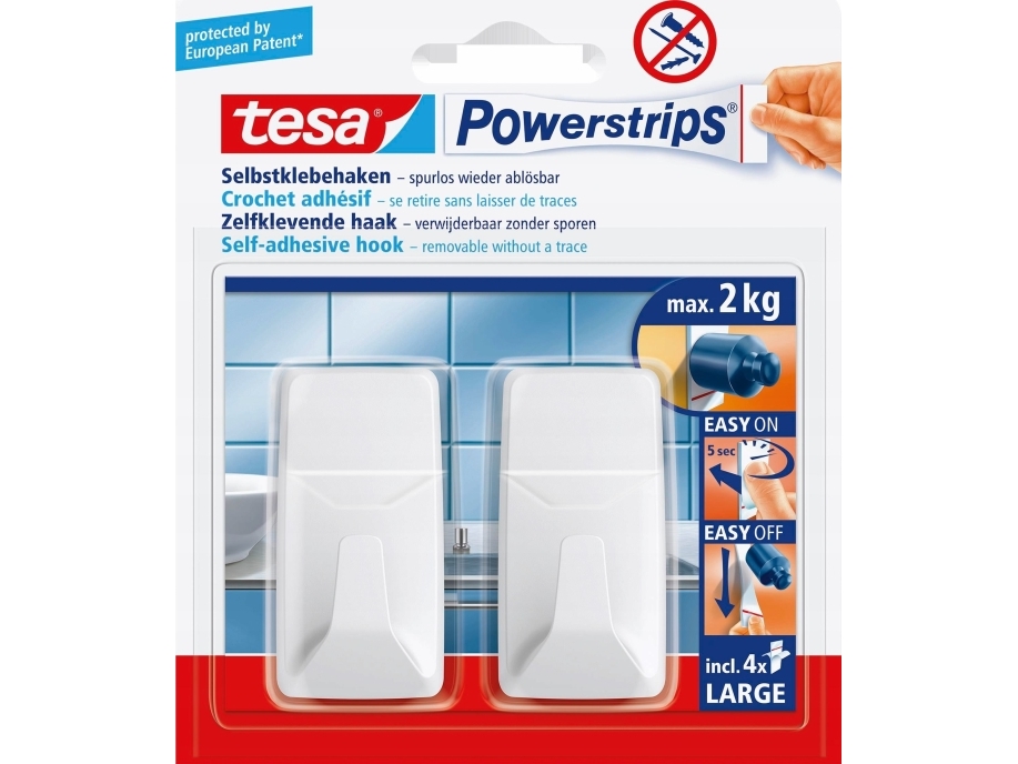 Tesa Powerstrips, Inomhus, Handdukskrok, Vit, Plast, Självhäftande Remsa, 2 Kg