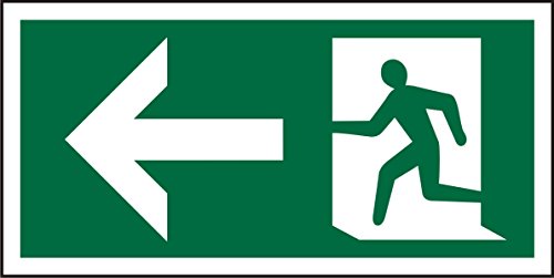 Seco Fire Exit – pil pekar vänster och man springer vänster piktogram skylt fotoluminescerande halvhård plast Självhäftande vinyl 200mm x 100mm