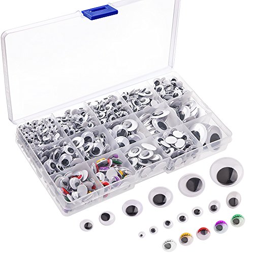 KUUQA 1 200 stycken plast självhäftande vinglande ögon för gör-det-själv hantverk scrapbooking tillbehör, nallebjörn docka göra leksaker ögon (blandade storlekar)