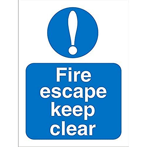 Seco Fire Escape Keep Clear SignSemi styv plast Självhäftande vinyl 150mm x 200mm Blue/Clear/White