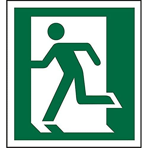 Seco Fire Exit – Man springer genom dörren vänster skylt halvhård plast Självhäftande vinyl 200mm x 200mm
