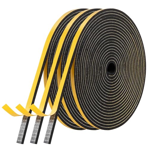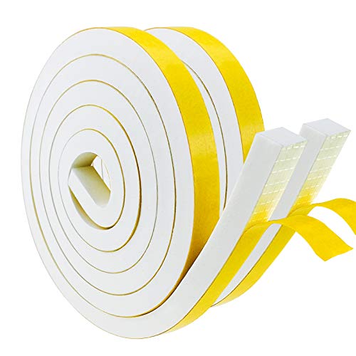 AiQInu Tätningstejp för dörrar, 16 m (52,5 fot) tätningstejp självhäftande dörrtätning fönster skumgummi tätningstejp, skumband dörrtätning fönster ljudisolering golvmatta
