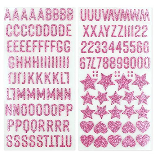 Självhäftande glitterbokstäver och siffror i skumgummi | ABC | för pyssel och design av skolkoner, kort, ljus och mycket mer - DIY Letter Set - Pink
