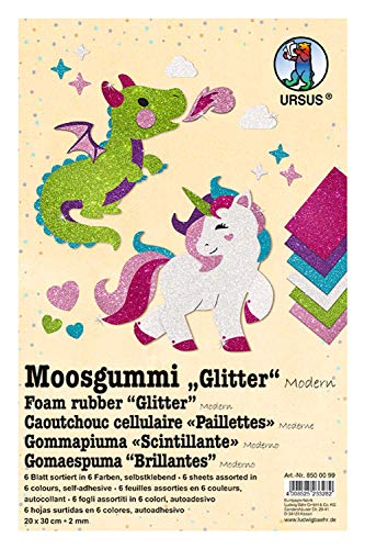 Ursus 8500099 – skumgummi glitter modern, 6 ark i 6 olika färger, ca 20 x 30 cm, 2 mm tjock, självhäftande, ljusbeständig, vattentät, flexibel och böjsäker, mångsidig användning