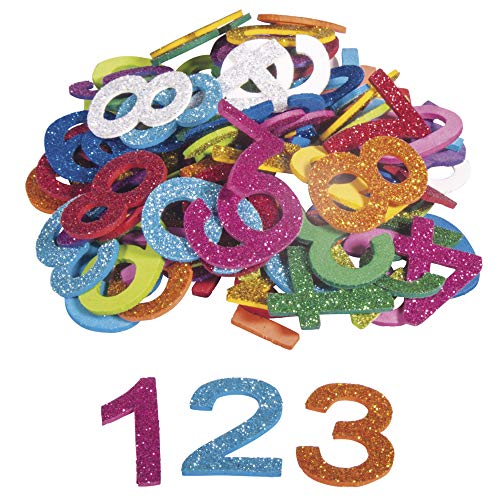 Rayher 30228000 skumgummi siffror glitter, 3 cm, 100 stycken, självhäftande, blandade färger, glitter skumklistermärken, skumgummiklistermärken 0-9, för dekoration, färgglada
