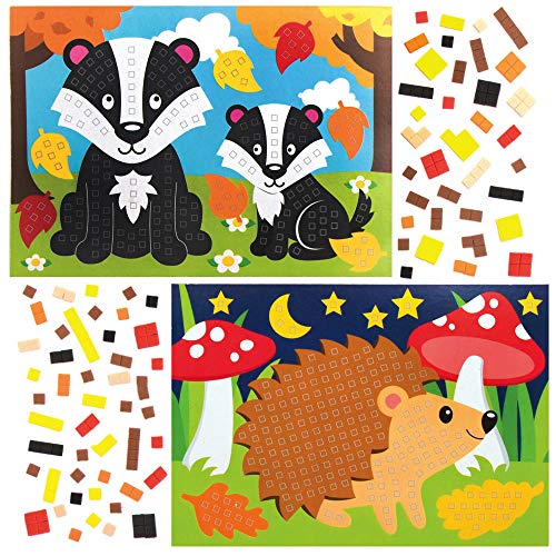 Baker Ross AX209 Skogsdjur mosaik självhäftande bilder pysselset – förpackning med 4 mosaikbilder för limning för barn, skumgummi kreativt set för barn