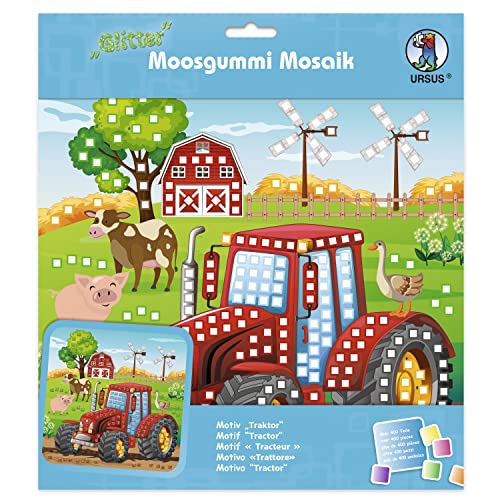 Ursus 8420017 – Glitter skumgummi, mosaikbild "traktor", pysselset för en självhäftande bild av skumgummiklistermärken, ca 25 x 25 cm med stativ, medium