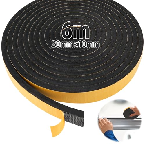 Självhäftande skumgummi 20 mm (B) x 10 mm (D) tätningstejp självhäftande för dörrar fönster antikollision fönstertätning gummi skumremsor tätning svart med hög densitet, totalt 6 m