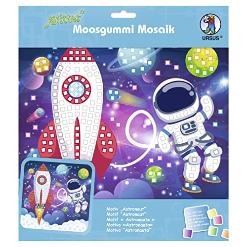 Ursus 8420019 Glitter Mosaik-Bild Astronaut, Hantverksset för en självhäftande bild av skumgummi klistermärken, ca 25 x 25 cm med stativ, flerfärgad
