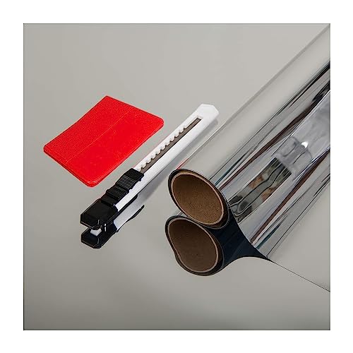 A1 2 x rullar 300 x 76 cm nyansfilm krom silver film fönsterfilm självhäftande insynsfilm spegel effekt nyansfilm engångs vision fönsterfilm spegelfolie spegelfolie spegelfolie speglad