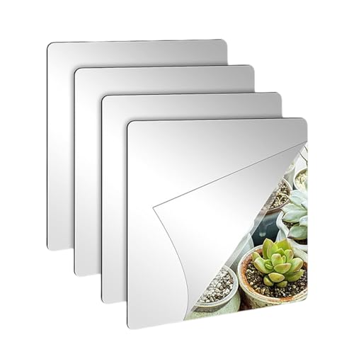Aidqxbaoer 4 stycken självhäftande spegel, självhäftande, 15 x 15 cm akrylspegel, skolspegel, flexibla spegelfolier, spegelklistermärken, för badrum, vardagsrum, sovrum, skåp
