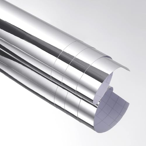 Stickyart Självhäftande vinyl silver spegel 30 x 800 cm oglaserad tapet väggdekal för heminredning kreativ vattentät hopfällbar flexibel för väggar lätt att installera