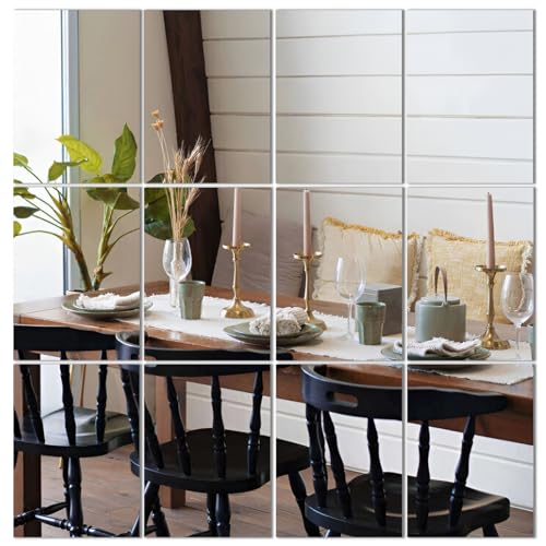 Vasemouh Väggspegelplattor 35 x 28 cm set med 16, självhäftande spegel i full längd – mångsidig dekor för badrum, sovrum, vardagsrum och hemmagym