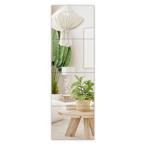 DONGDA Väggspeglar för Hela Kroppen, Akryl Spegelplattor Självhäftande Spegelfolie, Plast Spegel Väggmonterad Ramlös Full Längd Spegel Dekorativ Väggspegel för Hem Träning Gym (4 Stycken, 30cm x 30cm)