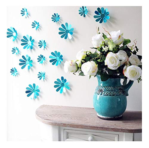 Set med 12 blommor, 3D, chic, självhäftande, spegel, blå