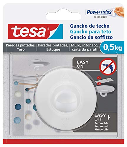 tesa Powerstrips Takkrok – självhäftande, roterande krok i vitt för att hänga upp takdekoration – med tesa Powerstrips Large – upp till 500 g hållkraft, (1-pack)