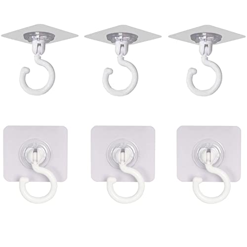 YUTOU 360° vridbar takkrok självhäftande 6 stycken utan borrning handdukskrokar vattentäta klädkrokar starka transparenta väggkrokar för tak, väggar, klädlådor (max 5 kg)