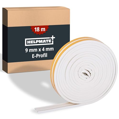 HjälpMATE – självhäftande tätningstejp för fönster och dörrar – fönstertätning/dörrtätning för att isolera luckor med 2 till 3,5 mm bredd – tätningstejp 9 x 4 mm (E-profil | 18 meter | vit)