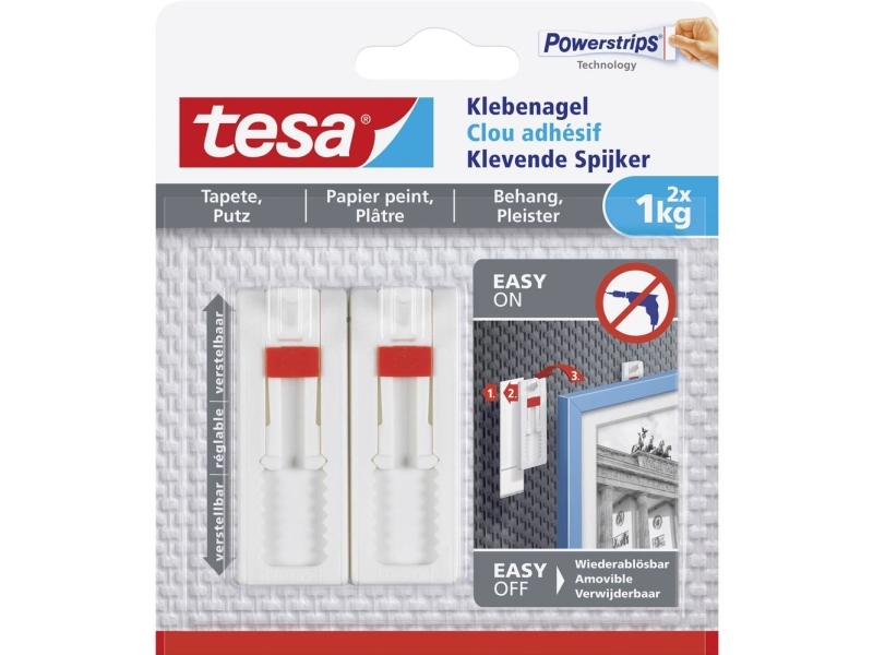 Tesa 77776-00500-00, Inomhus, Tavelkrok, Vit, Självhäftande Remsa, 2 Kg, Målad Vägg, Gips