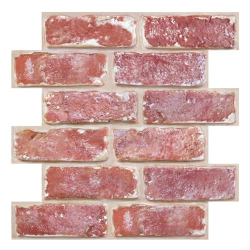 COMSTICKC hög kvalitet 3D-väggpanel självhäftande tegelsten röd, 10 st 30 x 30 cm, 3D PVC stenutseende självhäftande väggplattor, 3D-tegeltapet för inomhus, vattentät, övermålningsbar