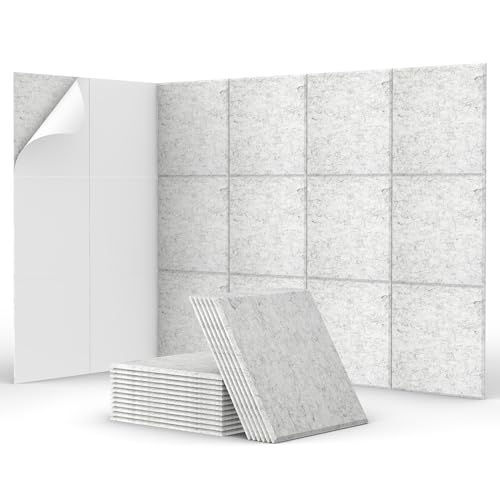 TONOR 18-Pack Självhäftande Akustikpaneler, 30 * 30 * 0.9cm Akustiska Paneler med Klistermärke, Ljuddämpande Isoleringsbehandling Väggpanel Ljudabsorberande Stoppning, Ljusgrå