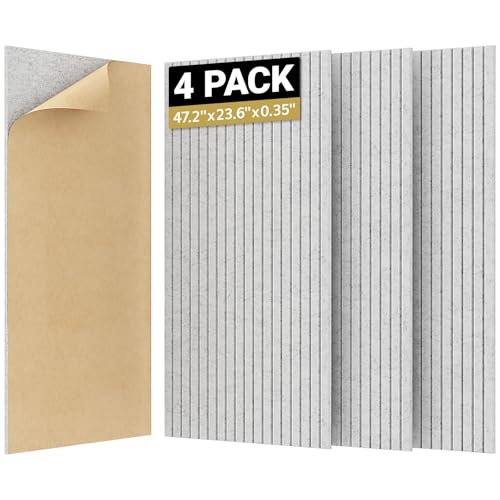 TONOR 4 Pack Stora Akustiska Paneler, 120x60x0,9cm Akustisk Väggpanel, Självhäftande Ljudisolerade Paneler, Dekorativa Ljudisolerade Väggpaneler för Ekoabsorption för Hemmastudio Kontor, Grå
