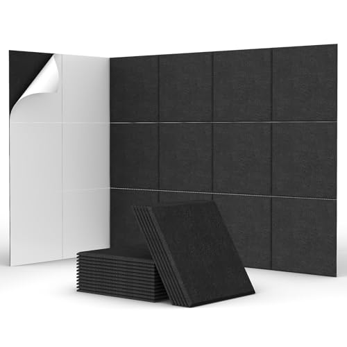 12-pack självhäftande akustikpaneler, TONOR 30 * 30 * 0.9cm fyrkantiga ljudisoleringspaneler för väggar, ljuddämpande isoleringsbehandling väggpanel ljudabsorberande stoppning, svart