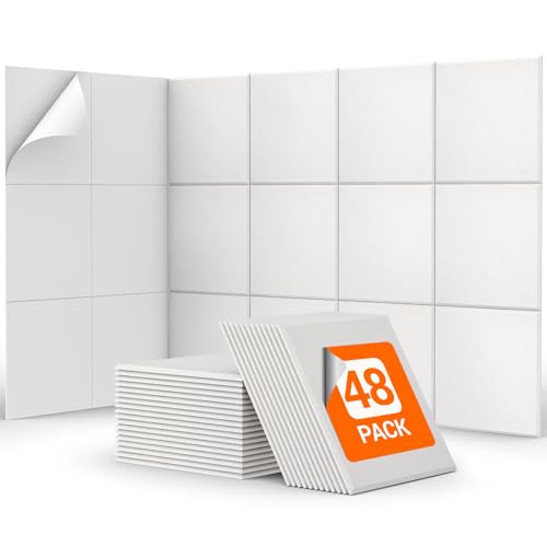 48-pack självhäftande akustikpaneler, TONOR 30 * 30 * 0.9cm fyrkantiga ljudisoleringspaneler för väggar, ljuddämpande isoleringsbehandling väggpanel ljudabsorberande stoppning, vit