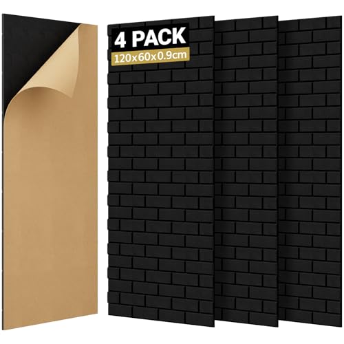 TONOR 4 Pack Stora Akustiska Paneler, 120x60x0,9cm Akustisk Väggpanel, Självhäftande Ljudisolerade Paneler, Dekorativa Ljudisolerade Väggpaneler för Ekoabsorption för Hemmastudio Kontor, Svart