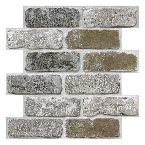 COMSTICKC hög kvalitet 3D-väggpanel självhäftande tegelsten grå, 10 st 30 x 30 cm, 3D PVC stenutseende självhäftande väggplattor, 3D-tegeltapet för inomhus, vattentät, övermålningsbar