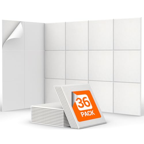 36-pack självhäftande akustikpaneler, TONOR 30 * 30 * 0.9cm fyrkantiga ljudisoleringspaneler för väggar, ljuddämpande isoleringsbehandling väggpanel ljudabsorberande stoppning, vit