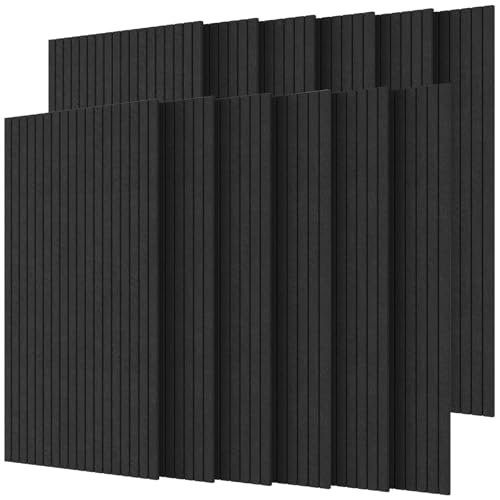 TONOR 12 Pack Stora Akustiska Paneler, 120x60x0,9cm Akustisk Väggpanel, Självhäftande Ljudisolerade Paneler, Dekorativa Ljudisolerade Väggpaneler för Ekoabsorption för Hemmastudio Kontor, Svart