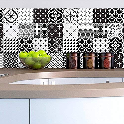 WALPLUS 15 cm (6 tum) @ 48 st arabiska svarta och silver väggkakel, kakel, skala av och klistra fast, självhäftande väggplattor, klistermärken för kök, badrum, kakel, överföring, stänkskydd kakel