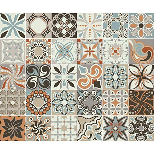 Ambiance-live pack med 24 självhäftande Azulejos cementeffekt väggplattor (15 x 15 cm)