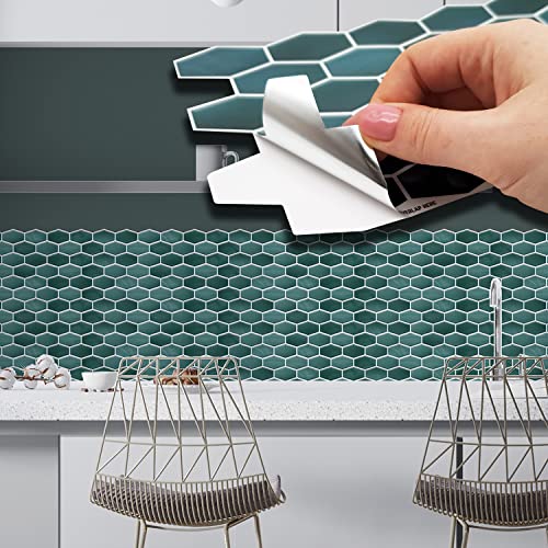 WALPLUS 28,5 x 14 cm@12 st skimrande grön vaxkaka hexa vägg kakel klistermärke stänkstänk kakel färg klistra på plattor skala och klistra fast självhäftande väggplattor klistermärken för kök badrum kakelöverföring