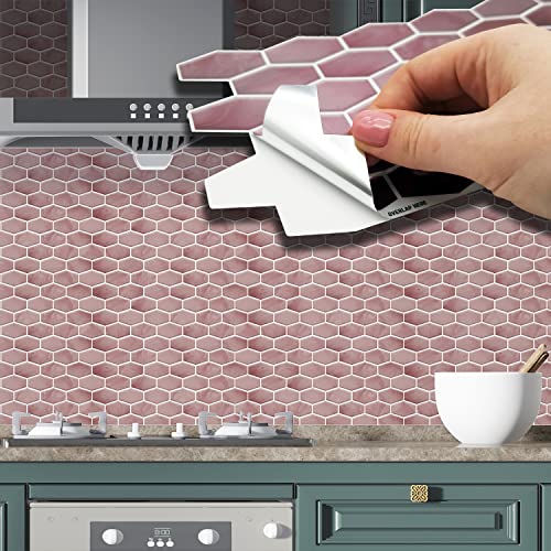 WALPLUS 28,5 x 14 cm @ 24 st skimrande ros vaxkaka hexa vägg kakel klistermärke stänkstänk kakel färg klistra på plattor skala och klistra fast självhäftande väggplattor klistermärken för kök badrum kakelöverföring