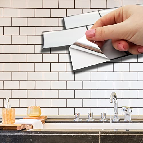 WALPLUS 28,5 x 14 cm @ 48 st lysande vit silver hexacube vägg kakel klistermärke stänkstänk kakel färg klistra på plattor skala och klistra fast självhäftande väggplattor klistermärken för kök badrum kakelöverföring