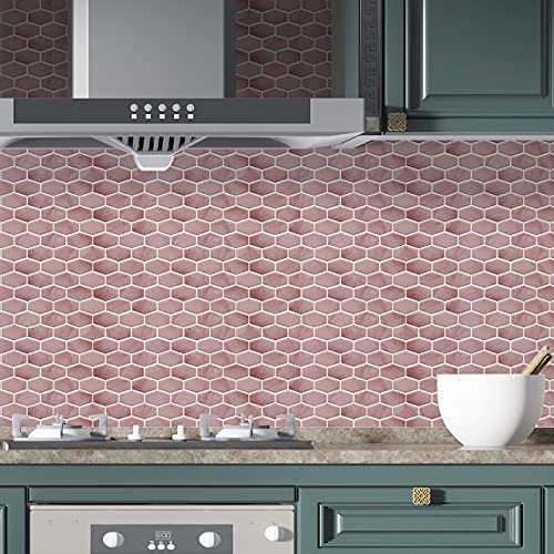 WALPLUS 28,5 x 14 cm@12 st skimrande ros vaxkaka hexa vägg kakel klistermärke stänkstänk kakel färg klistra på plattor skala och klistra fast självhäftande väggplattor klistermärken för kök badrum kakelöverföring