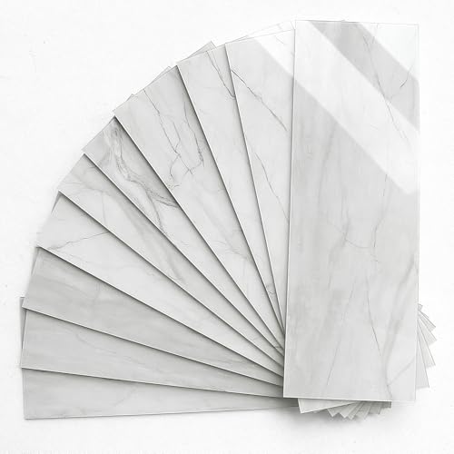 WALPLUS 28,5 x 14 cm @ 12 enheter vit marmor metro platt kakel klistermärke stänkstänk kakel färg klistra på plattor skala och klistra fast självhäftande väggplattor klistermärken för kök badrum kakel överföring WT1705