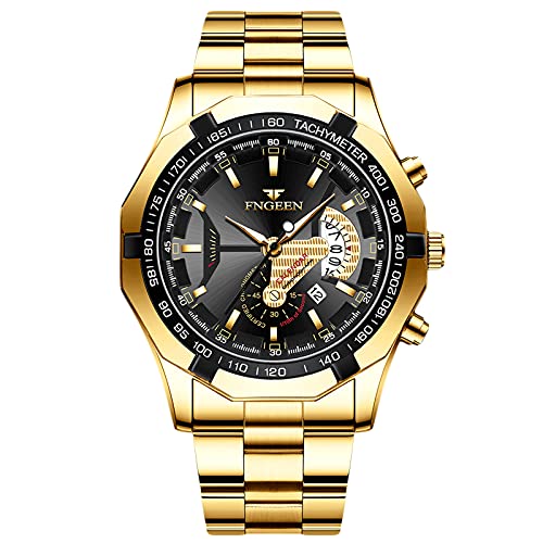 RORIOS Klassisk självlysande herrklocka analog kvartsur med rostfritt stålarmband affärsklocka, Svart guld, armband