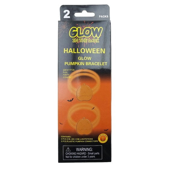 Glow in the dark/självlysande armband med pumpa/fladdermus 2-pack assorterad